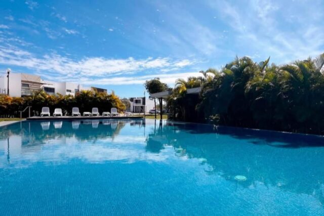 🏊 Alberca privada con acabado de Chukum, perfecta para disfrutar momentos únicos en un ambiente relajante.