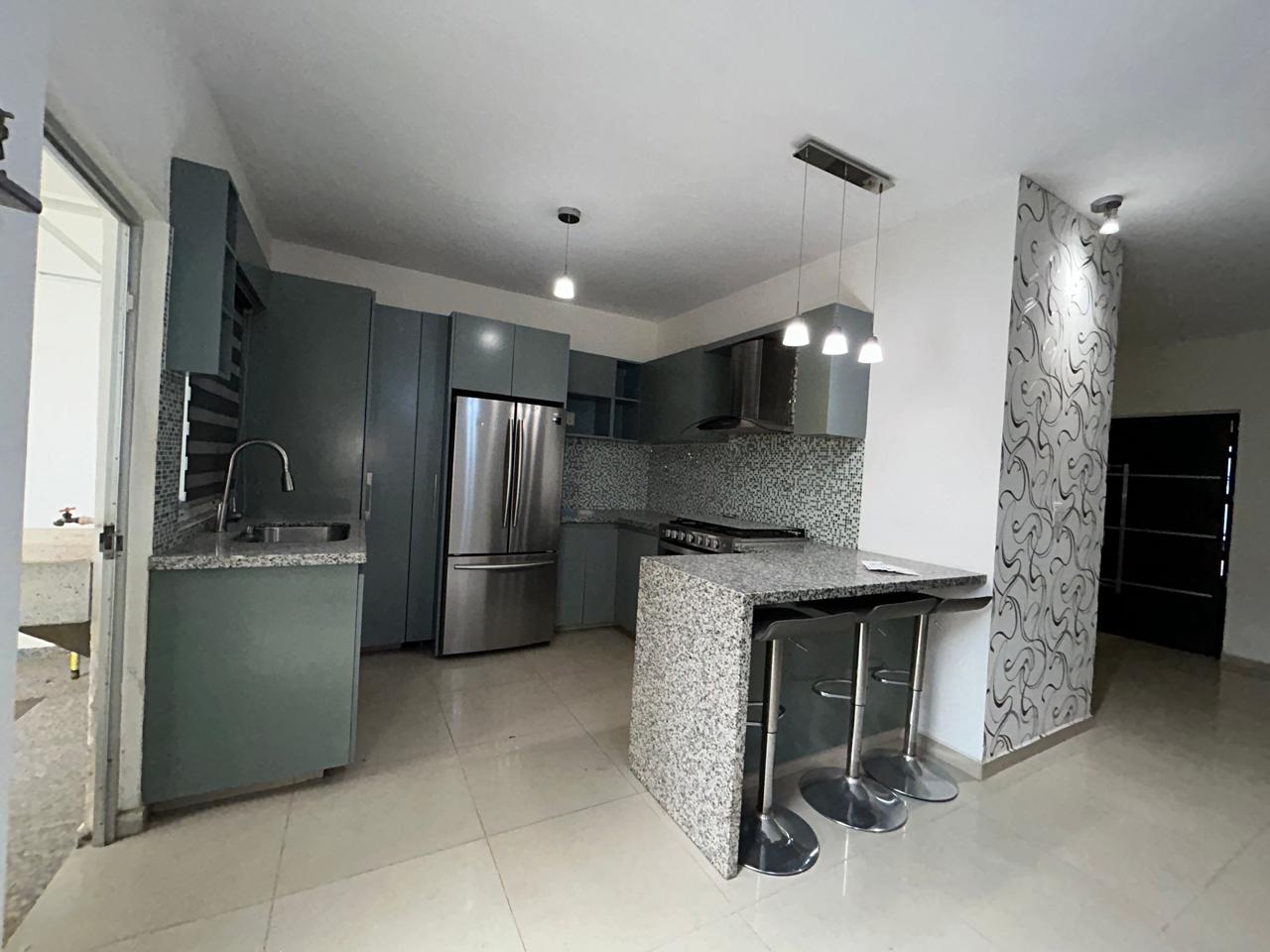 🍽️ Cocina integral con cubierta de granito, equipada con estufa, campana y un elegante refrigerador de 2 puertas, perfecta para crear y compartir tus mejores recetas.