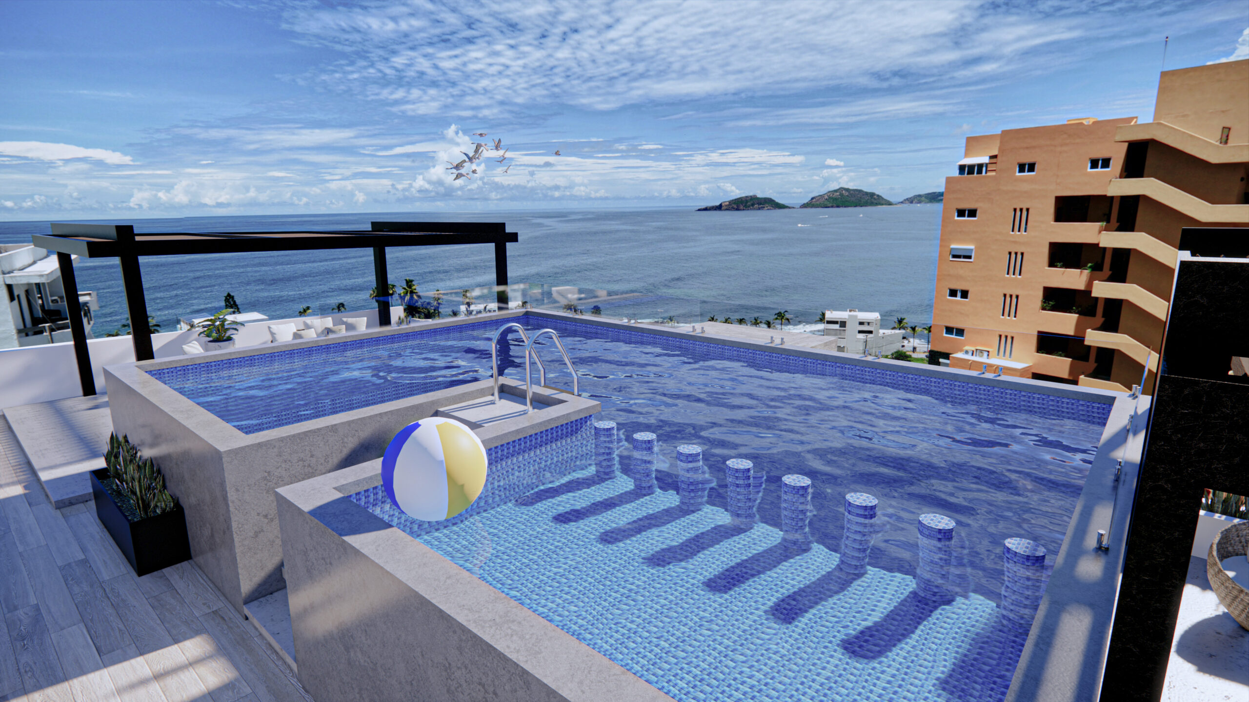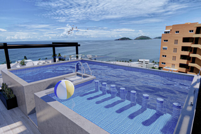 🏊 Alberca con vista panorámica al mar y la ciudad