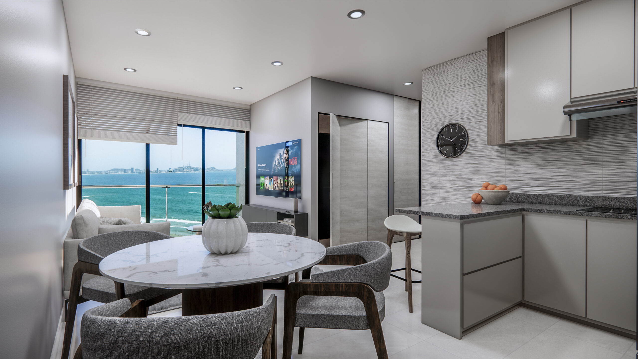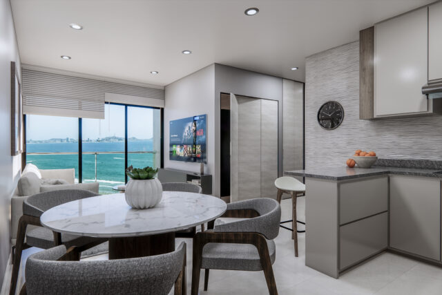 - Cocina integral, balcón y espectaculares vistas al mar (en unidades seleccionadas)